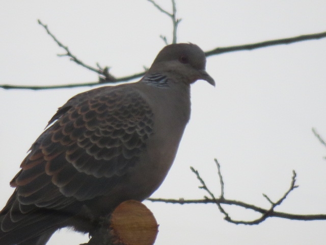 珍しく野バトが庭にやってきてじっとしていました。やがて栗の木に止まったのでパチリ。